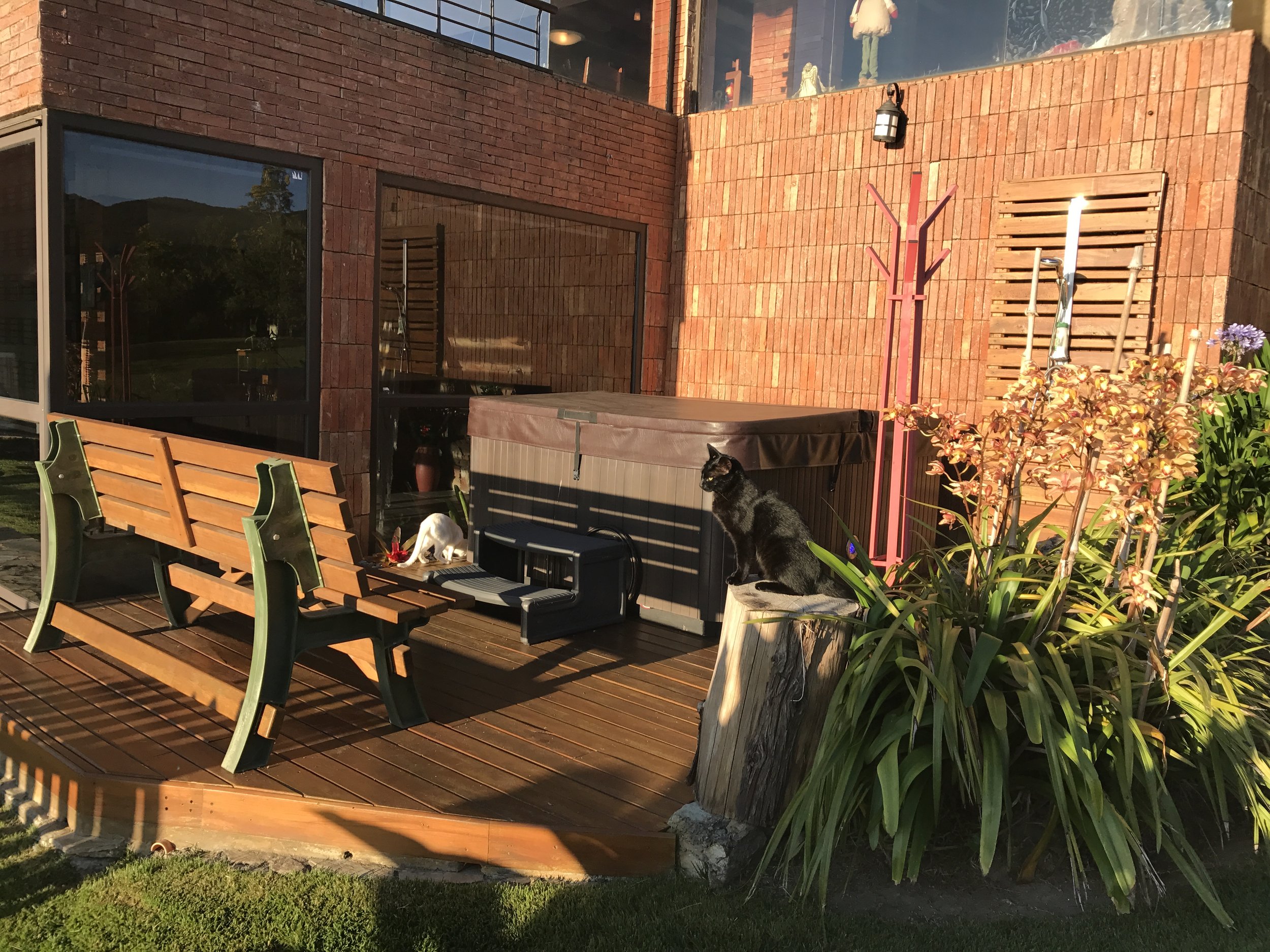 Jacuzzi con hidromasaje para hasta 5 personas, siempre a 97°F, ideal para disfrutar y relajarse en cualquier momento.